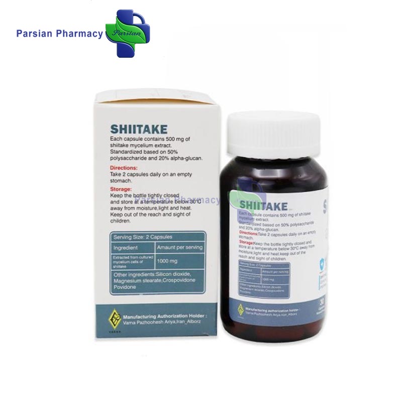 ترکیب موثره: ۵۰۰ میلیگرم عصاره میسلیوم قارچ شیتاکه (استاندارد شده بر اساس حداقل ۵۰٪ پلیساکارید و ۲۰٪ آلفا-گلوکان).